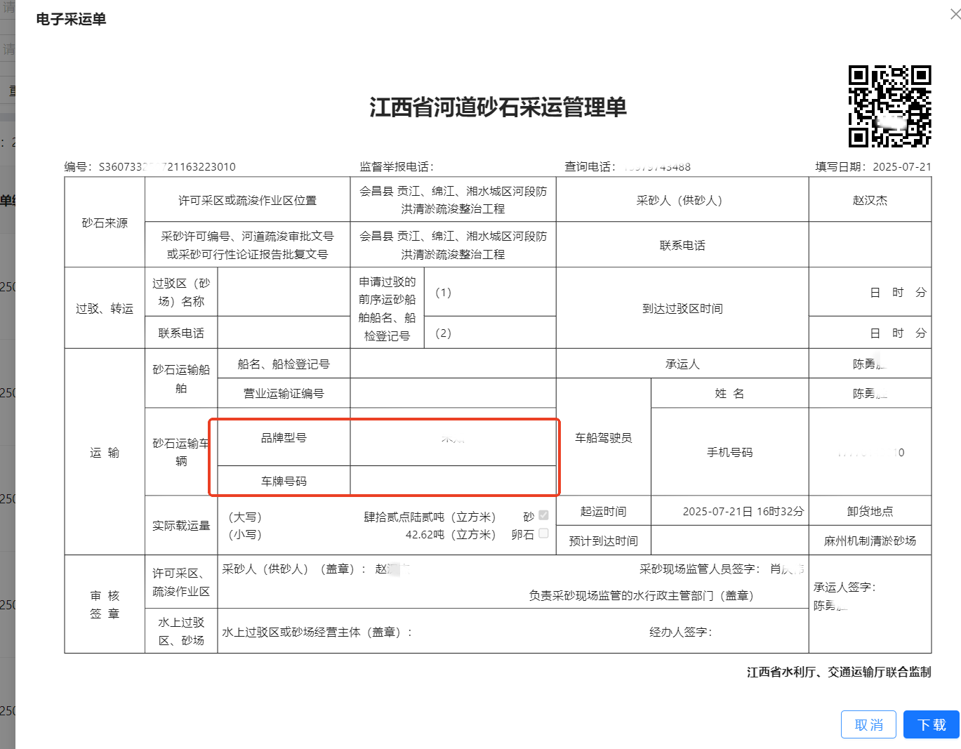 | 采砂机具 | 绑定北斗设备编码,提交技术参数 | 拆解报告上传后立即冻结 |