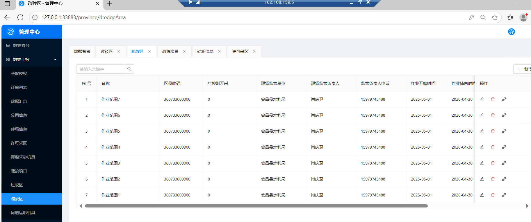 | 砂石公司 | 在线填报工商/许可信息,自动验真 | 许可证失效时联动删除 |