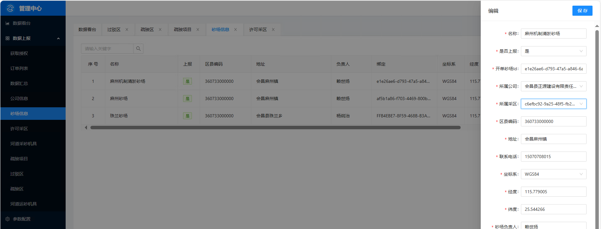 | 砂场基础数据 | 坐标/产能/环保设备全字段备案 | 关停后自动移出监管名录 |